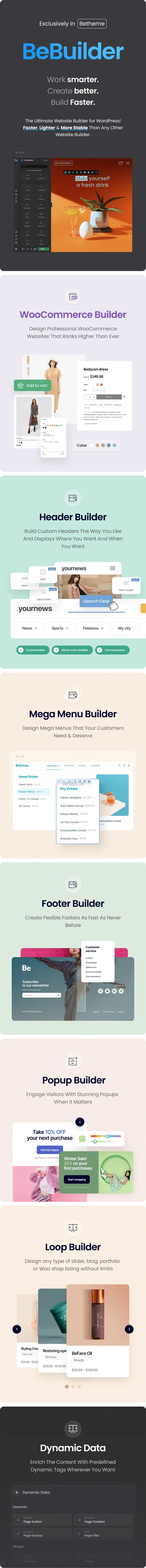 Betheme主题非常有名,不仅仅因为其多用途主题的属性,而是它可以轻松适应需要处理的任何项目,而无需编写任何代码。另外其著名的 Muffin Options 面板功能非常强大,几乎无限数量的全局选项允许修改能看到的任何内容:颜色、字体、帖子、页面、侧边栏等等。 Betheme 主题还能与Elementor完美兼容。