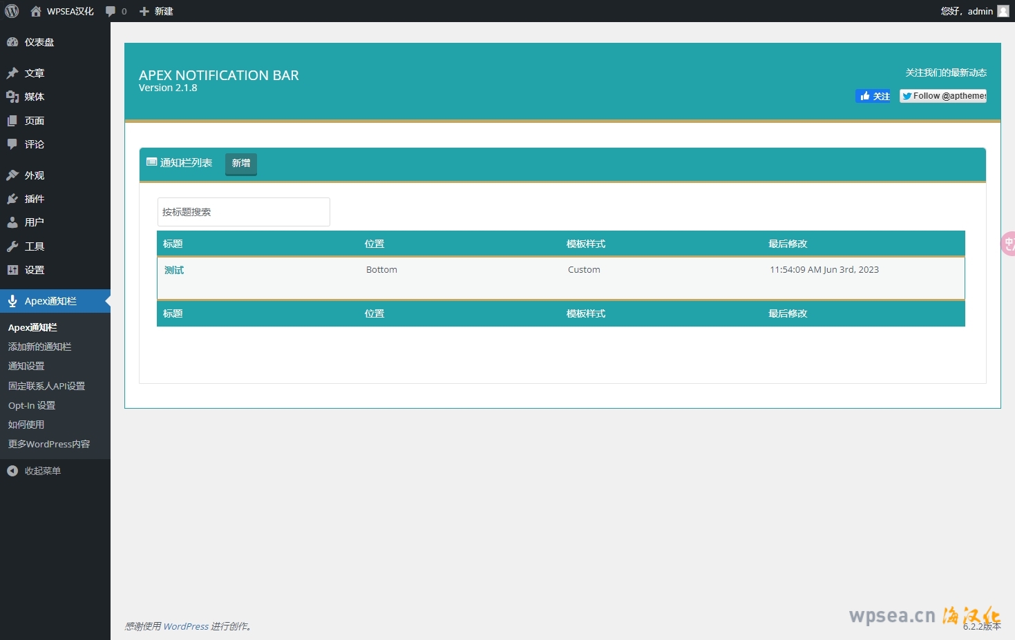 APEX NOTIFICATION BAR ‹ WPSEA汉化 — WordPress
