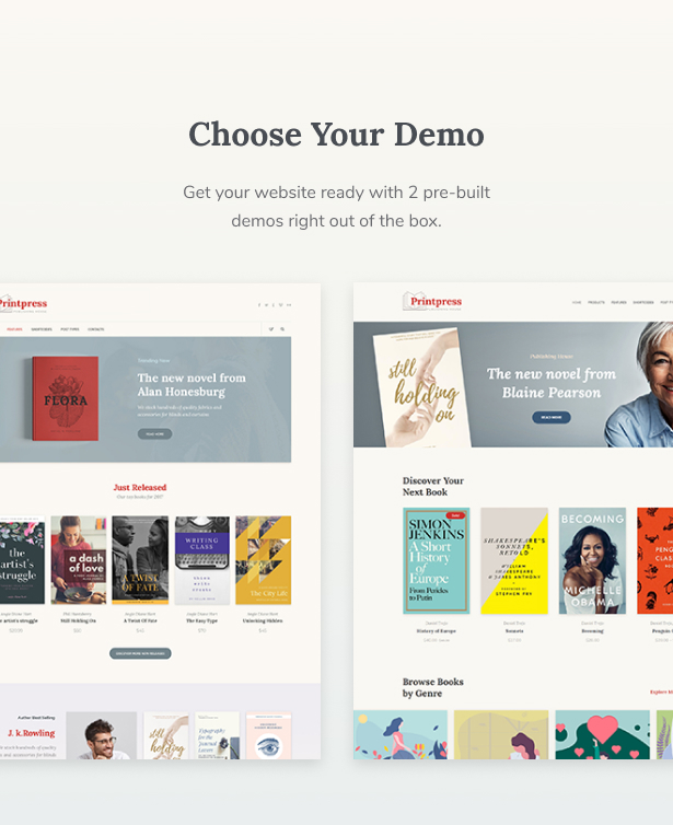 Printpress 是一款专为书店、出版公司、作者官方网站、文学俱乐部、数字在线商店和图书馆设计的现代化功能强大的 WordPress 主题。兼容 WordPress 6.x 和 Gutenberg 编辑器,旨在为用户提供无缝的内容管理体验。