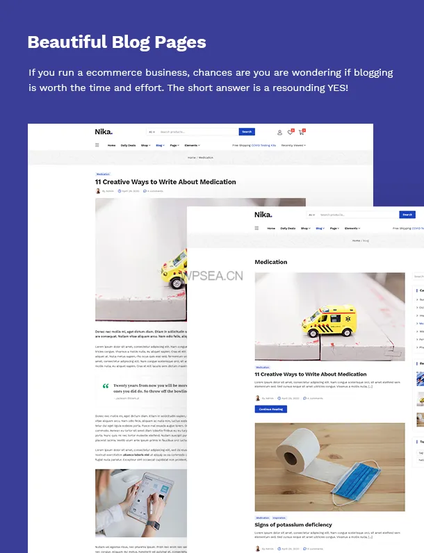 Nika 是一款专为医疗行业设计的 Elementor WooCommerce 主题,适合私人诊所、药店及医疗设备销售商。其现代简约的风格不仅提升了用户体验,还能有效促进在线销售。无论您是想建立新网站还是优化现有业务,Nika 都能为您提供强大的支持。
