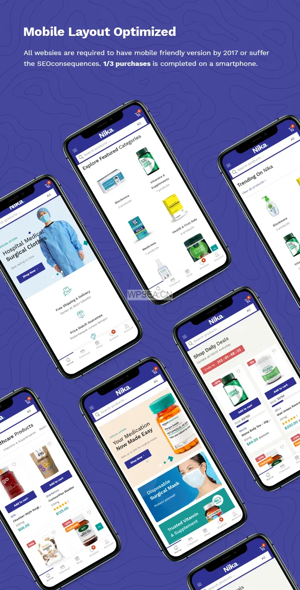 Nika 的移动端设计令人印象深刻,确保您的客户在手机上浏览时也能获得流畅的购物体验。主题配备了便捷的移动菜单,用户可以轻松找到所需产品,提升了购物的便利性。