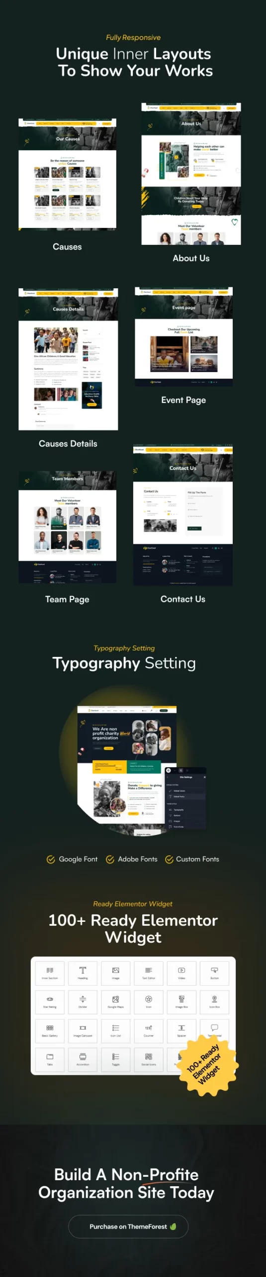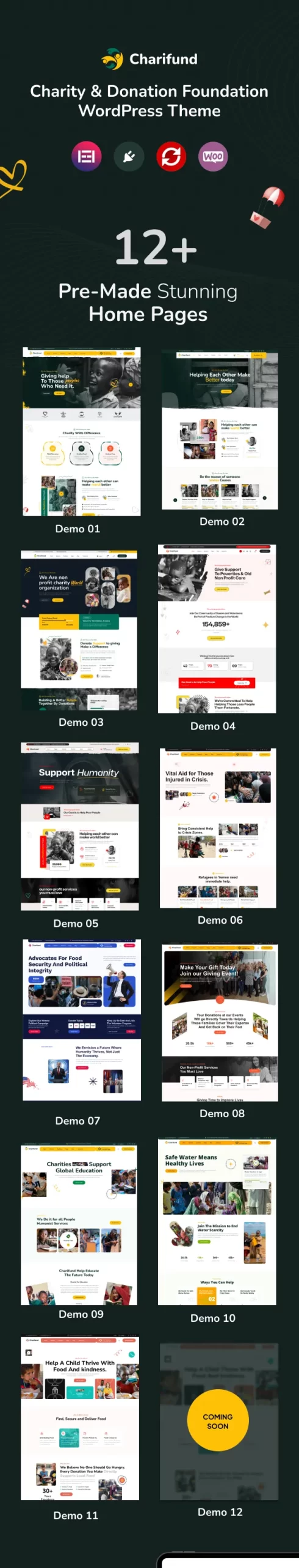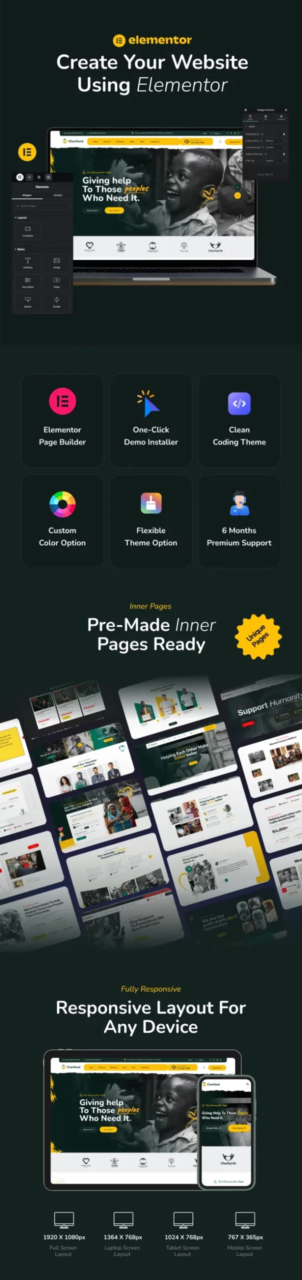 - 用户友好的页面构建: 借助最受欢迎的拖放式页面构建器Elementor,Charifund使得网站定制变得轻而易举,即使是初学者也无需编程技能。
