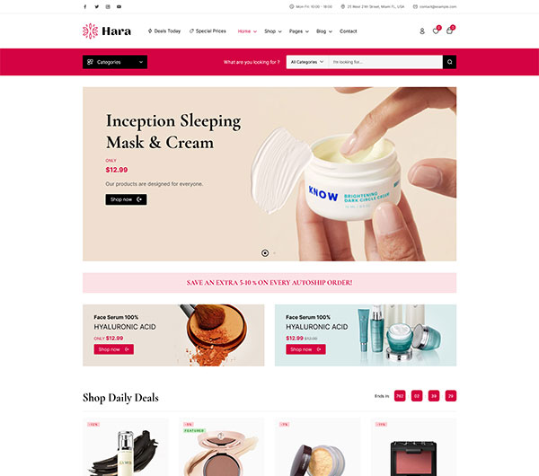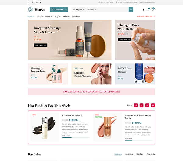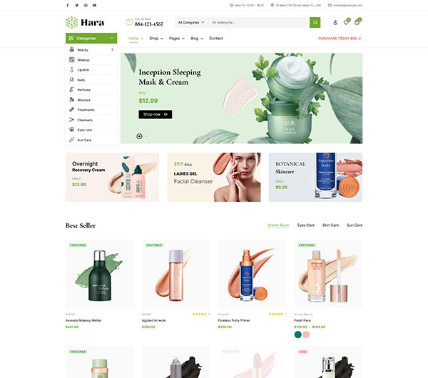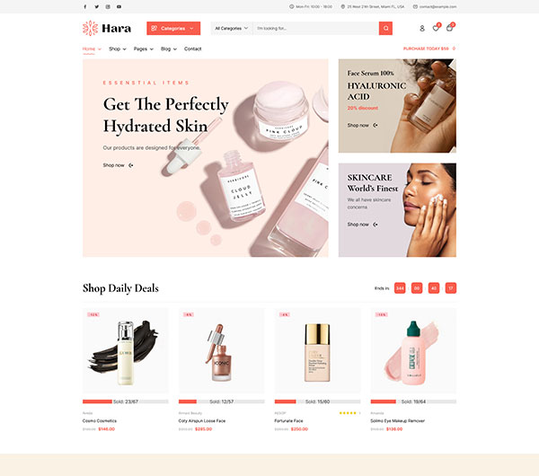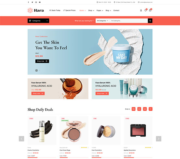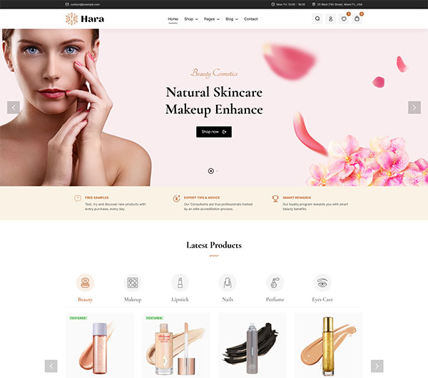 - 美容和化妆品商家:Hara 专为美容和化妆品行业设计,商家可以利用其丰富的功能和美观的设计,轻松创建一个专业的在线商店,提升品牌形象并增加销售额。