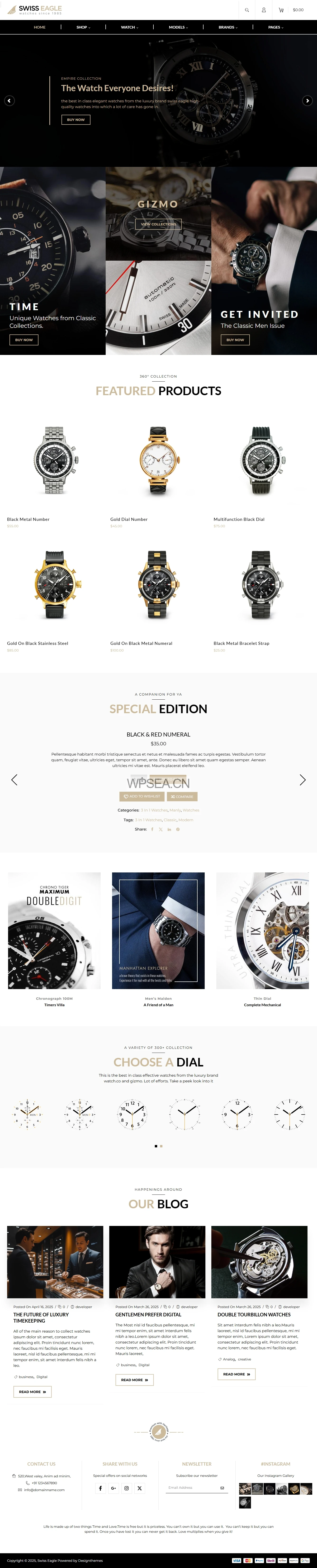 - 多样化的产品展示:SwissEagle 提供专门的页面布局,包括商店、手表、型号和品牌,确保用户能够快速找到他们所需的产品。通过使用 Mega Menu,您的客户可以轻松导航到感兴趣的页面。