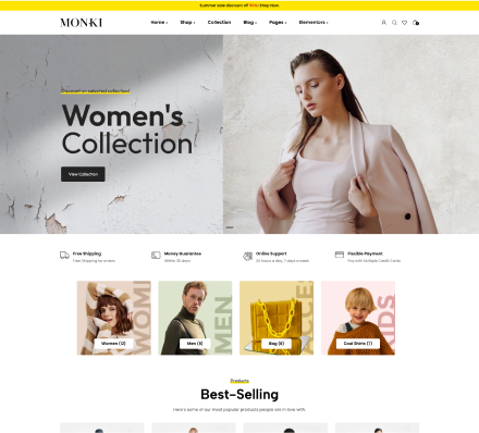- SEO 友好:Monki 经过优化,确保网站在搜索引擎中获得良好的排名,助力您的电商业务。