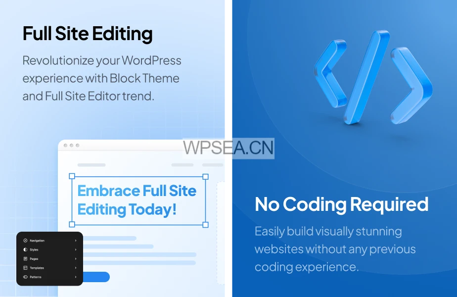 随着 WordPress 向全站编辑(FSE)未来发展,选择 FSE 主题将使您能够全面控制网站的每一个部分,包括页眉、页脚、模板和全局样式。所有这些都可以直接在块编辑器中完成,赋予您设计自由,同时保证网站的性能,确保您的网站快速、灵活且具备未来兼容性。