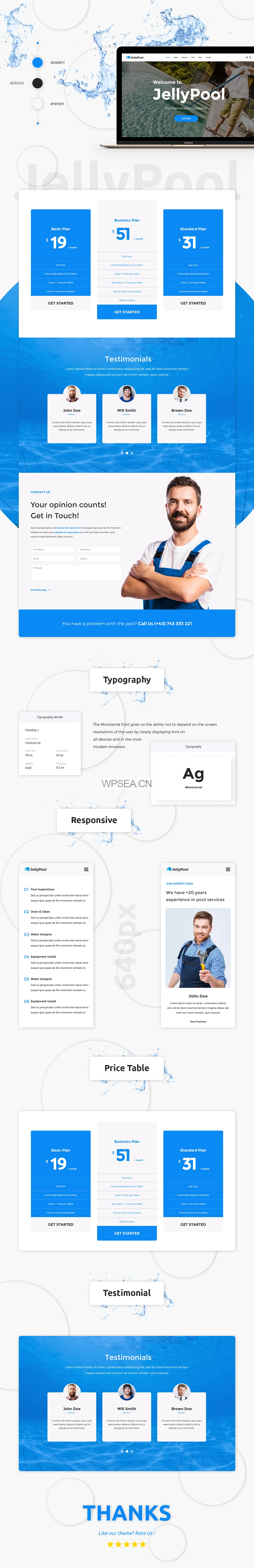 JellyPool 是一款专为游泳池维护和清洁服务设计的 WordPress 主题。它提供了全面的功能和灵活的自定义选项,帮助您轻松创建一个专业且引人注目的网站。无论您是经营游泳池清洁公司、维护服务,还是相关产品的在线商店,JellyPool 都能满足您的需求。