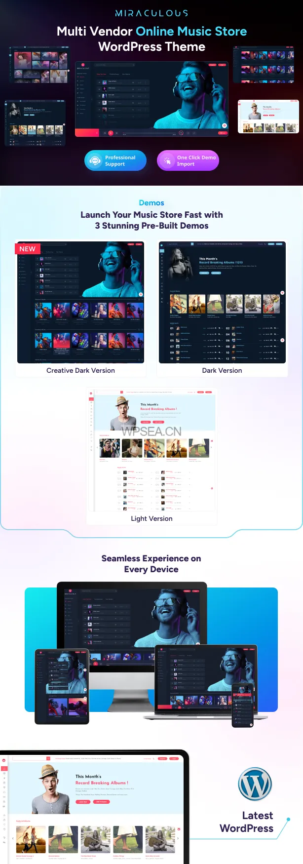Miraculous - 在线音乐商店 Elementor WordPress 主题是一款功能强大且灵活的解决方案,适合任何希望建立在线音乐平台的用户。无论您是专业音乐人还是音乐爱好者,Miraculous都能帮助您实现梦想。
