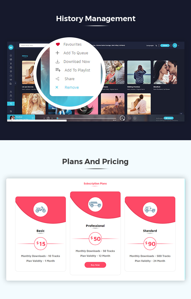 Miraculous主题包含多个页面,包括博客页面、定价计划页面、个人资料页面、上传页面、单曲专辑页面等。每个页面都经过精心设计,确保在各种设备上均能完美呈现。