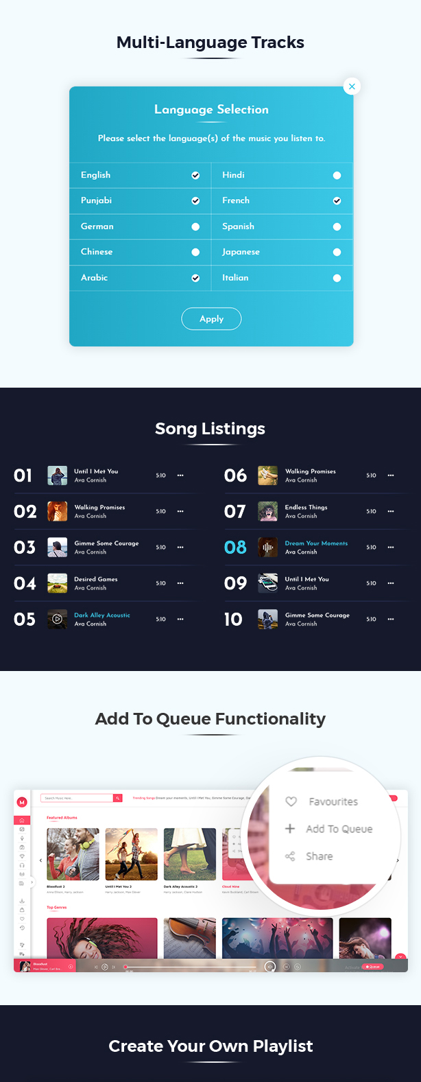 用户可以在浏览其他页面时不间断地播放音乐。Miraculous主题支持创建播放列表,用户可以轻松管理他们的音乐收藏。还提供了歌曲质量选择功能,以满足不同用户的需求。