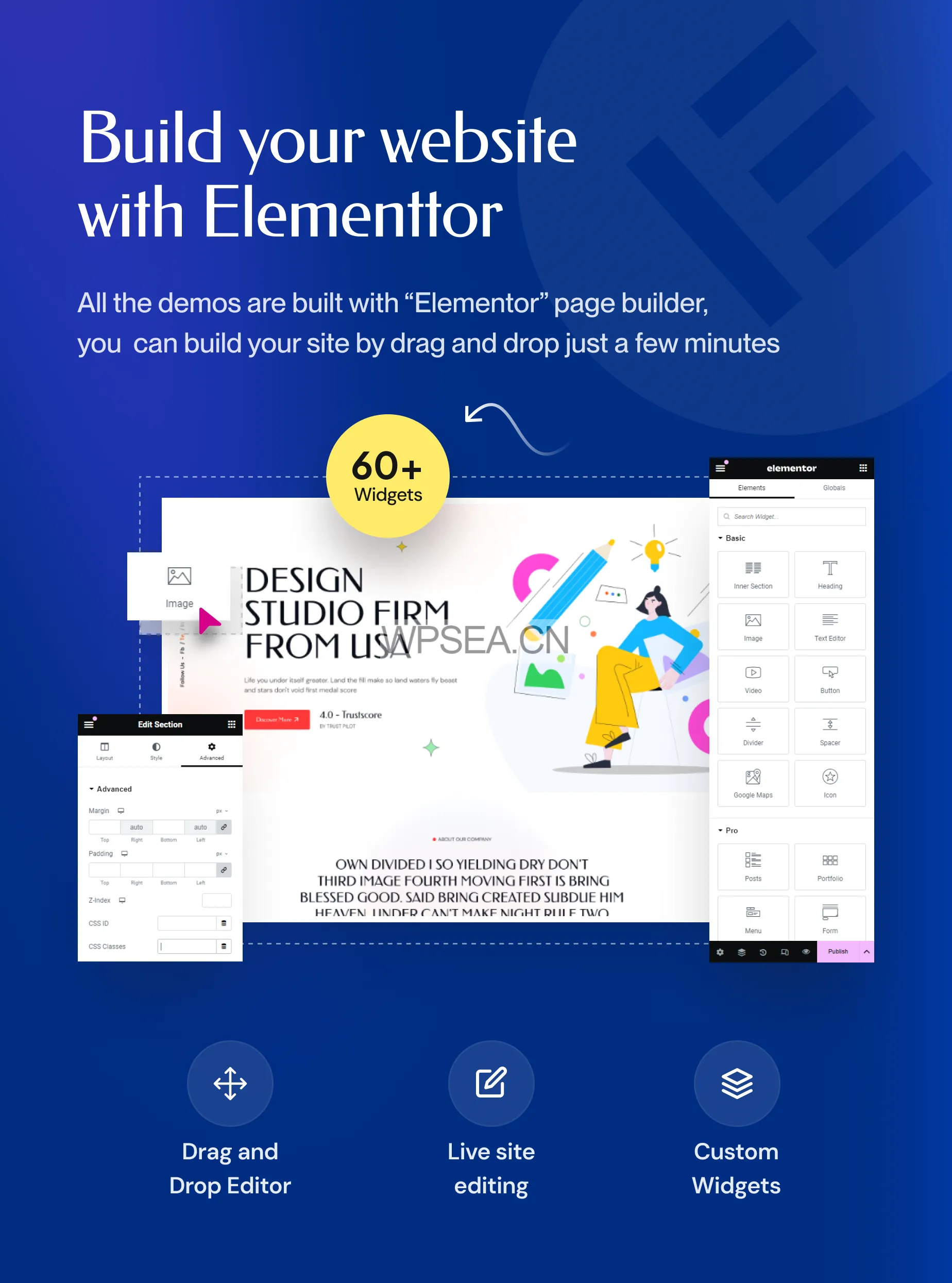 - 80+ 自定义 Elementor 小部件:利用 Elementor 页面构建器,您可以轻松创建独特的页面布局。