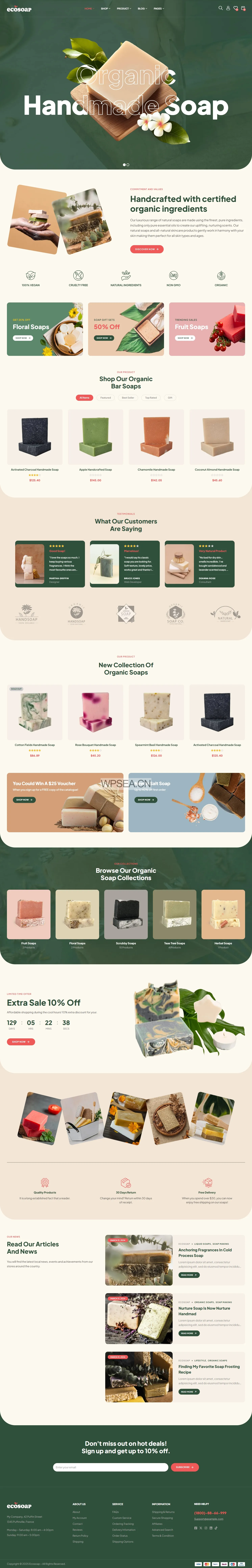 Ecosoap 是一款多功能的 WordPress 主题,专为手工香皂和相关产品商店设计。其强大的功能和灵活的自定义选项,使得每位商家都能轻松创建出一个专业、美观且功能齐全的在线商店。
