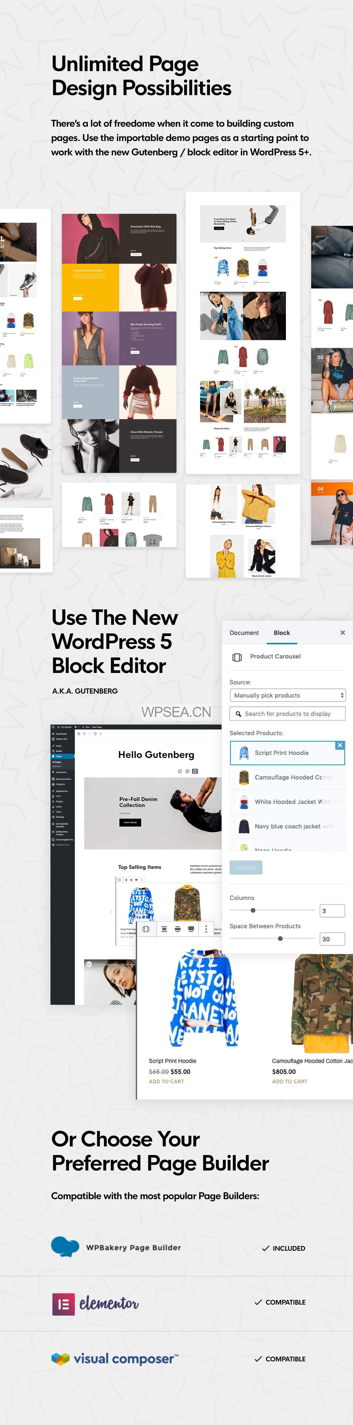 主题提供多种预设的演示内容,用户可以快速导入并开始构建自己的在线商店。这大大缩短了网站建设的时间。