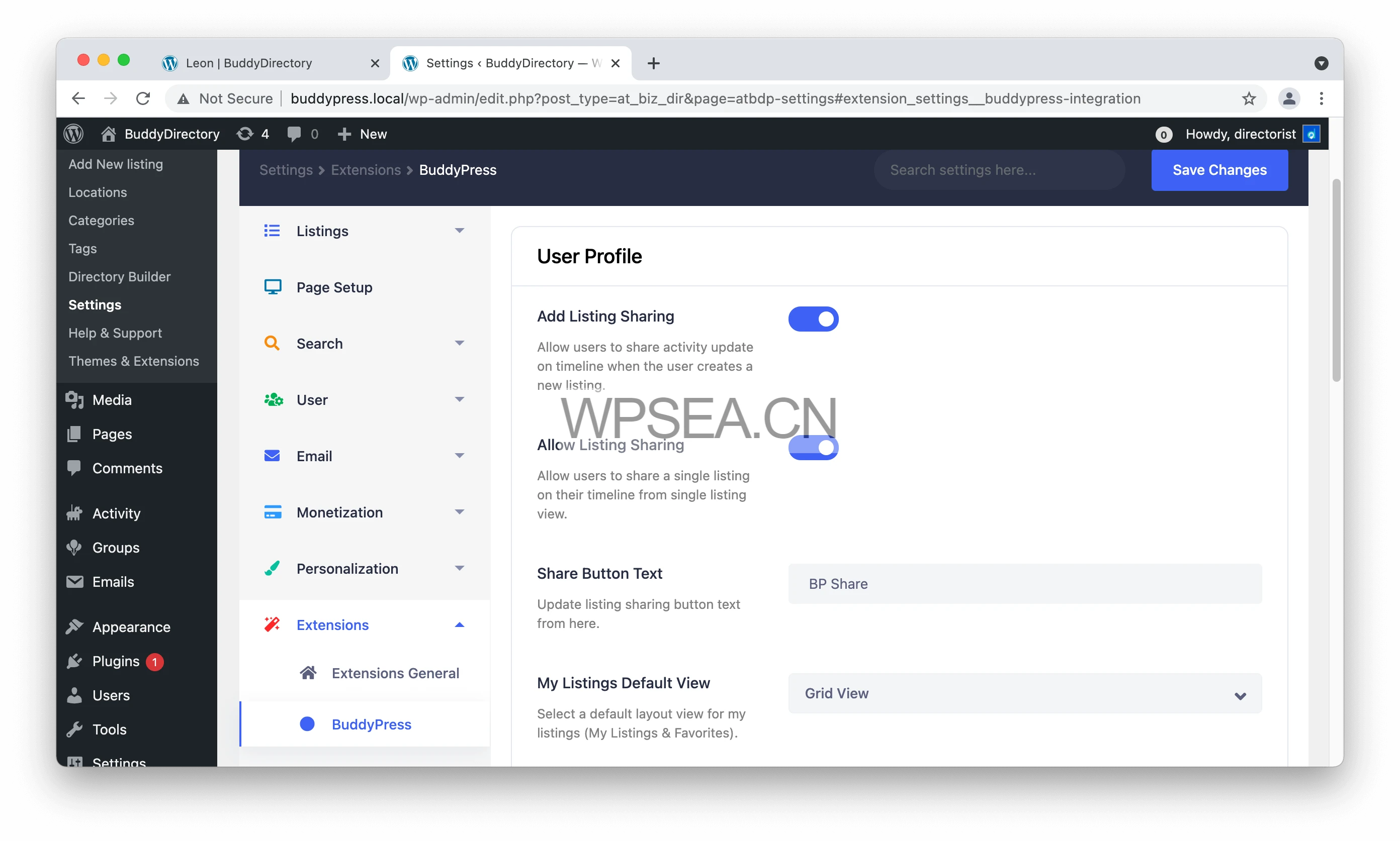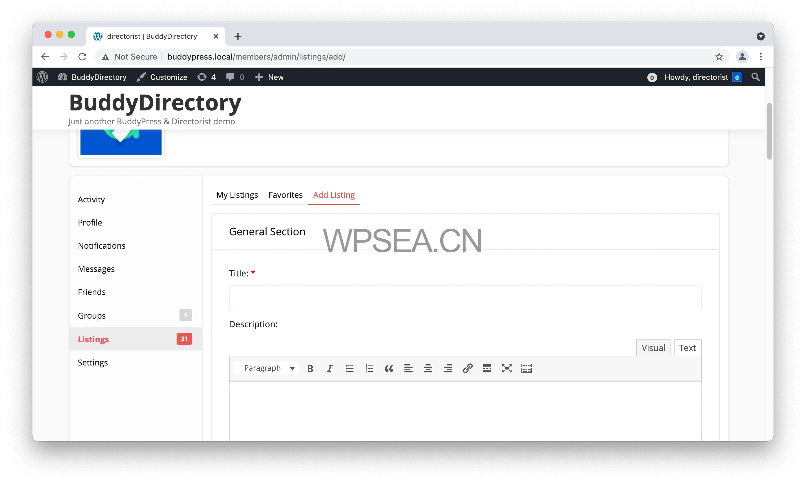 Directorist - BuddyPress Integration 是一款高级扩展插件,旨在将 Directorist 和 BuddyPress 无缝结合,让您能够同时构建一个混合型的列表目录和社交网络。通过此扩展,Directorist 将自动使用 BuddyPress 注册表单为您的 BuddyPress 网络添加新目录用户。该集成新增了“Listings(列表)”、“Favorites(收藏)”和“Add Listing(添加列表)”功能,用户可以方便地提交列表。