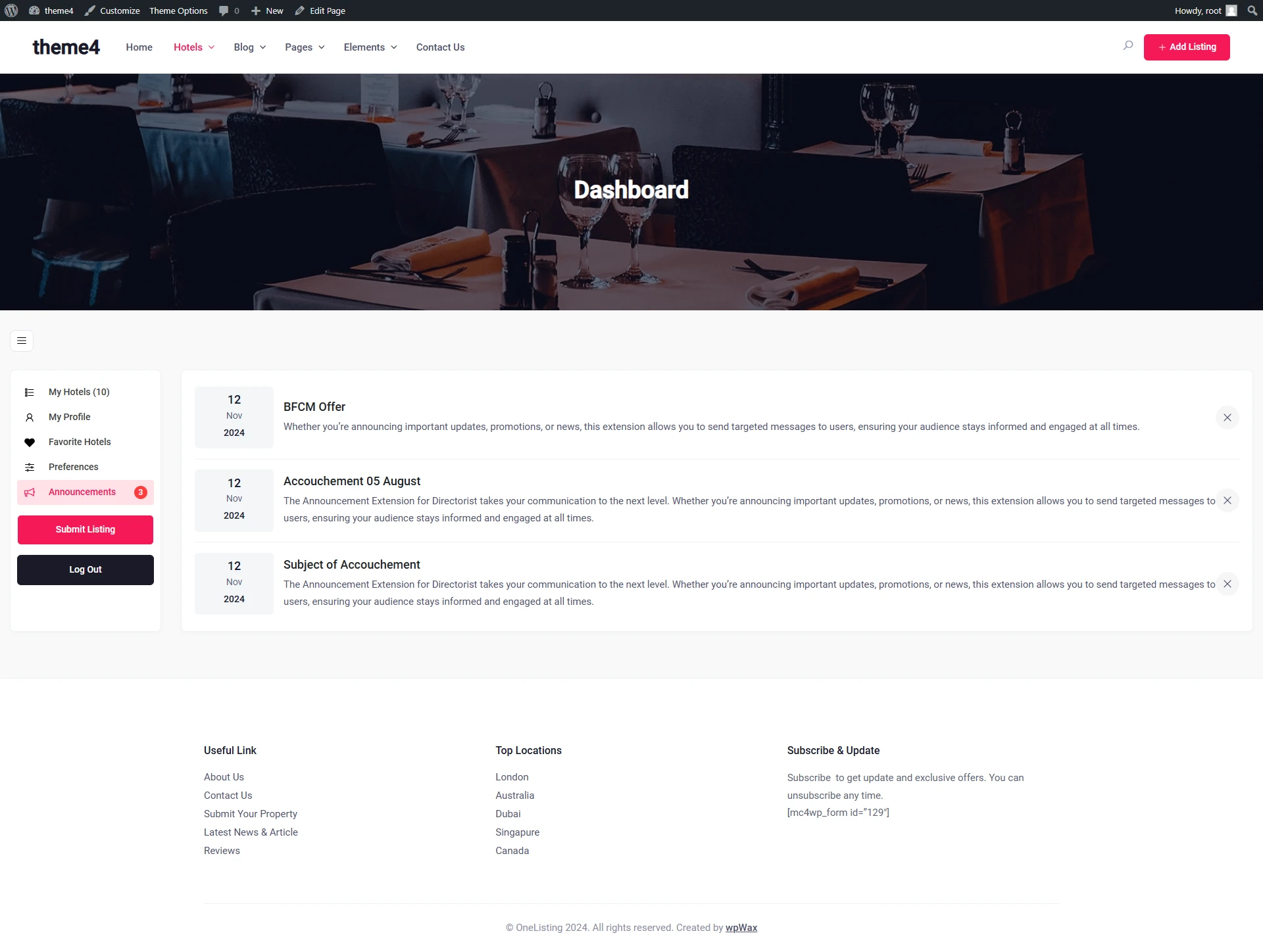 使用 Announcement Extension,您可以在目录网站上轻松发布公告。无论是重要通知还是新活动,您都可以通过用户的仪表盘直接与他们沟通,确保信息传达的及时性。