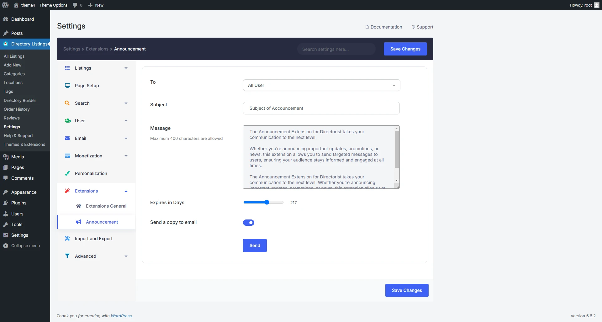 Directorist Announcement Extension 使您的沟通能力更上一层楼。通过该扩展,您可以轻松向用户发送定向消息,确保他们不会错过任何重要信息。这种简便而强大的工具让您能够在用户的仪表盘上直接分享关键更新和新闻,提升用户体验。