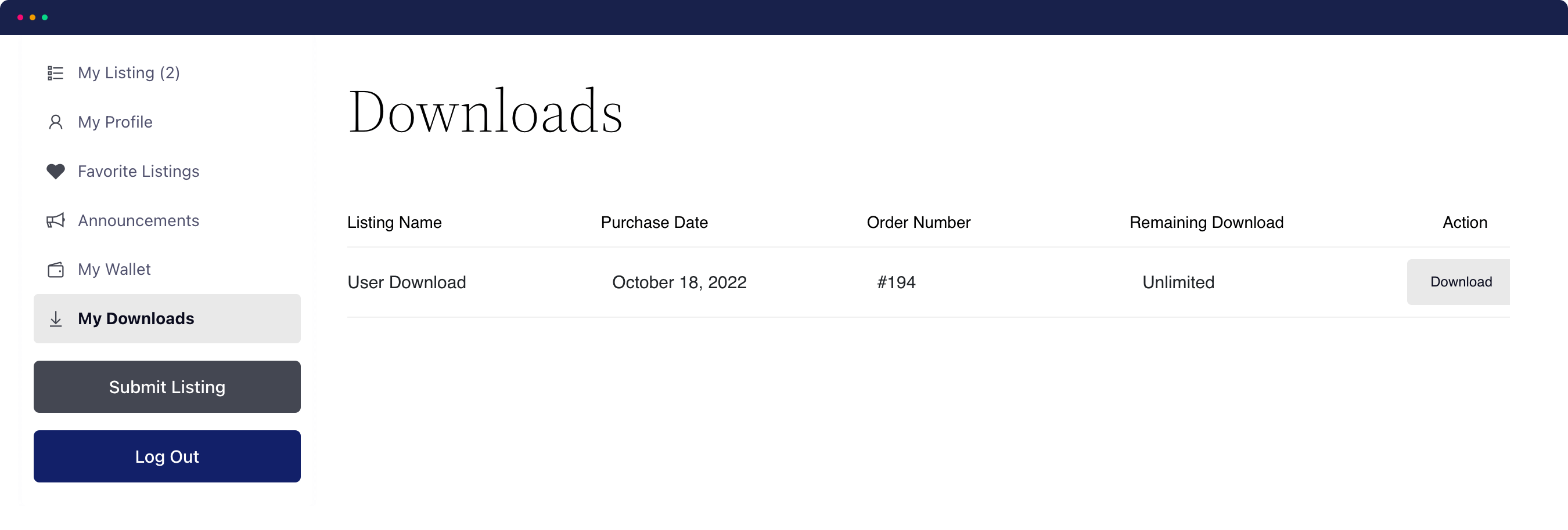 - 买家下载列表:买家可以查看其下载列表及剩余下载次数。