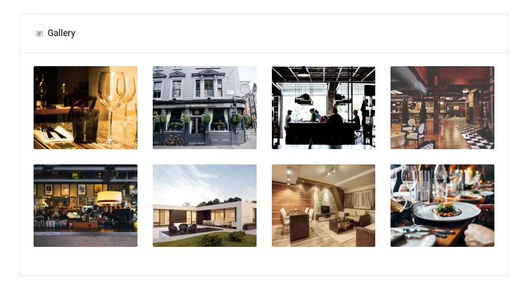 借助 Image Gallery 插件,您可以为用户提供一个展示其品牌的机会。无论是餐厅、酒店还是房产,图像画廊都能有效地展示业务,吸引更多的观众。用户更愿意看到餐厅内部的美食图片或酒店房间的照片,而没有图像画廊的房产列表则难以赢得用户的信任。毕竟,眼见为实。