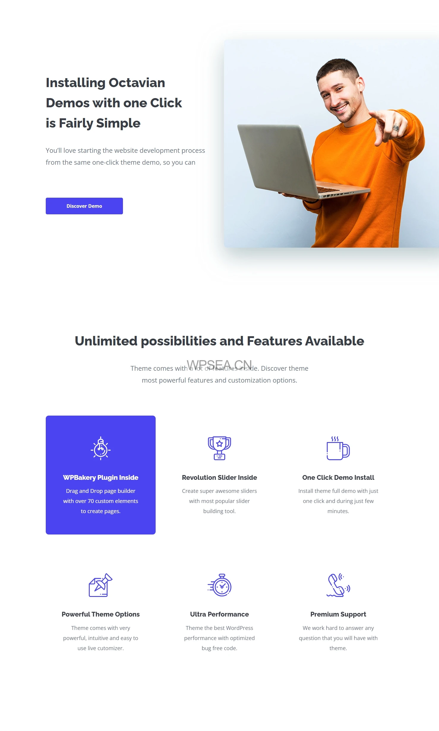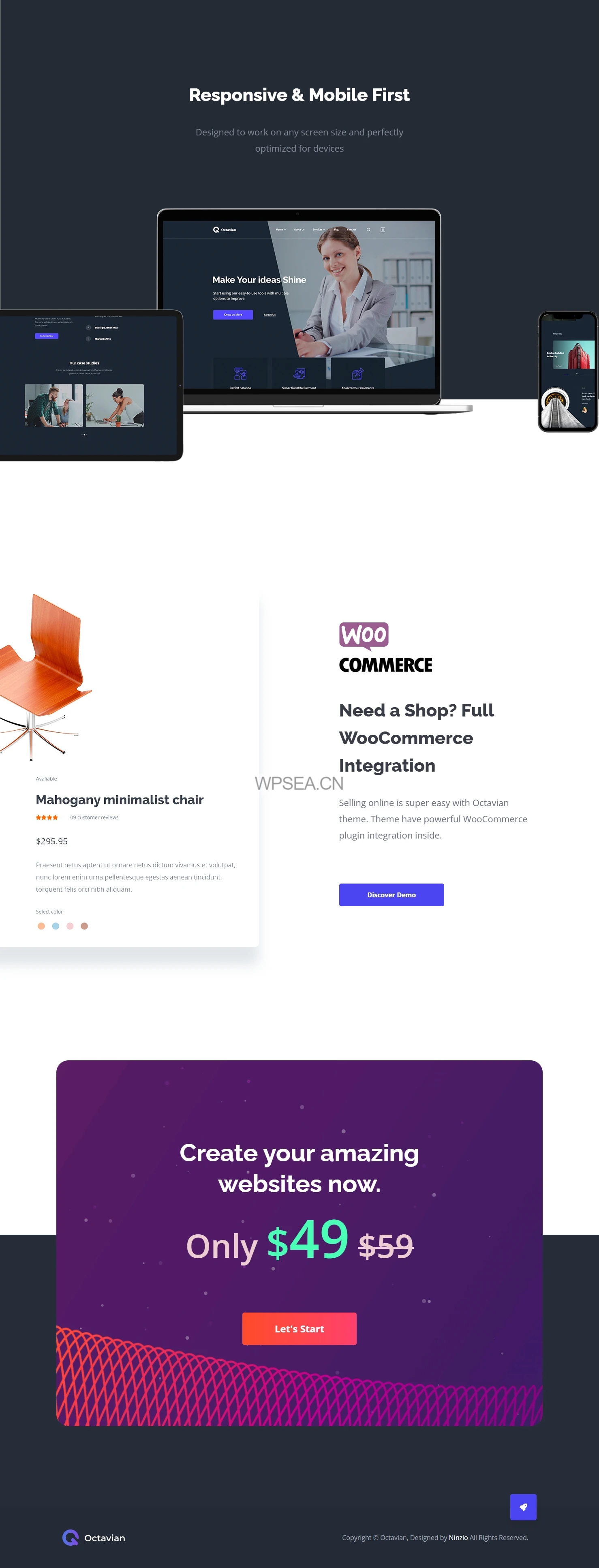 Octavian是一款超响应式和视网膜就绪的WordPress主题,适用于各种类型的网站,包括创意、科技、应用、商业、工作室、投资组合、建筑、健身、SaaS、共享办公、在线商店、医疗等。该主题提供丰富的自定义选项和设置,几乎可以更改所有内容。我们设计了多种布局和样式,使主题灵活且强大。