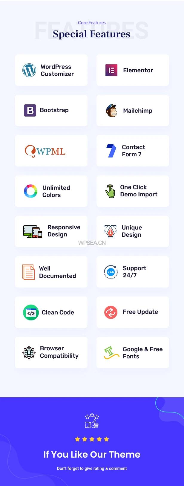 提供详尽的文档和视频指南,帮助用户快速设置和自定义主题。此外,购买后可享受终身更新和六个月的用户支持。