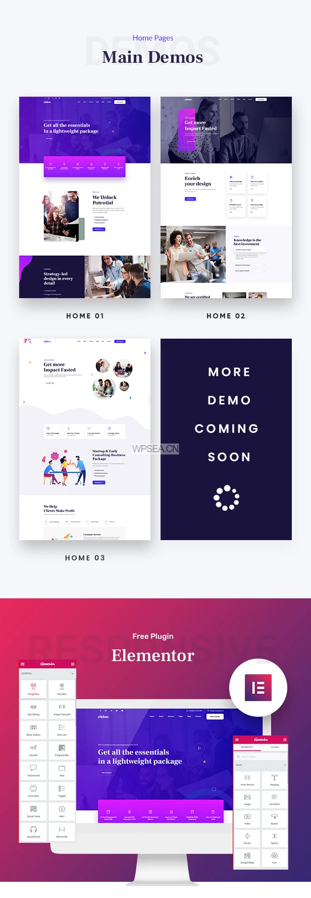 Zibber集成了Elementor页面构建器,支持拖放操作,用户可以轻松创建和编辑页面内容,节省大量时间。