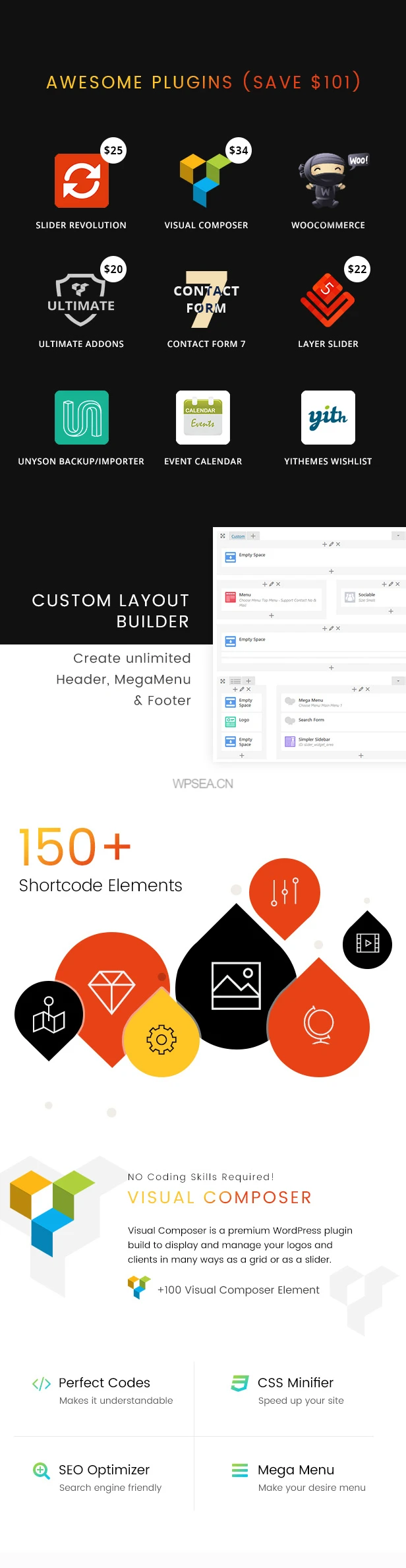 Home Fix 主题与 Visual Composer 完全兼容,用户无需编程知识即可通过拖放方式轻松创建页面。丰富的设计元素和模板使得网站建设变得简单高效。