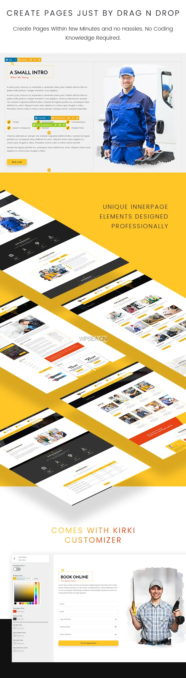Home Fix 主题专为各种家庭维护服务而设计,支持多种行业应用,包括但不限于: