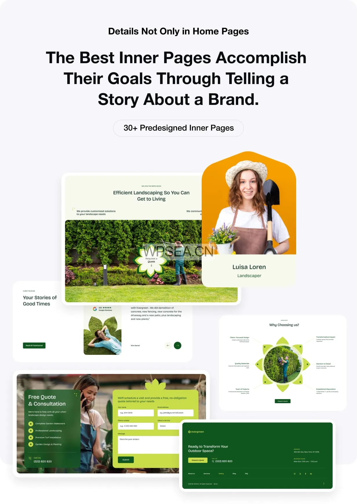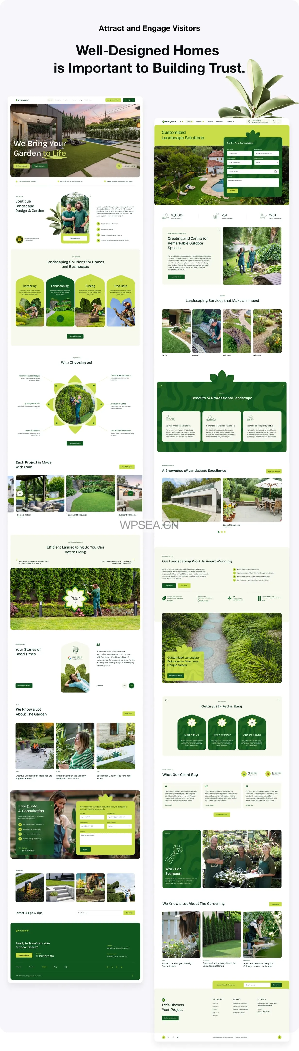 EverGreen,一个专为园艺和景观设计行业打造的现代WordPress主题。无论您是住宅或商业景观公司、园艺设计工作室、草坪护理服务、硬景观专家,还是户外维护提供商,EverGreen都能帮助您展示专业技能,提升业务形象。