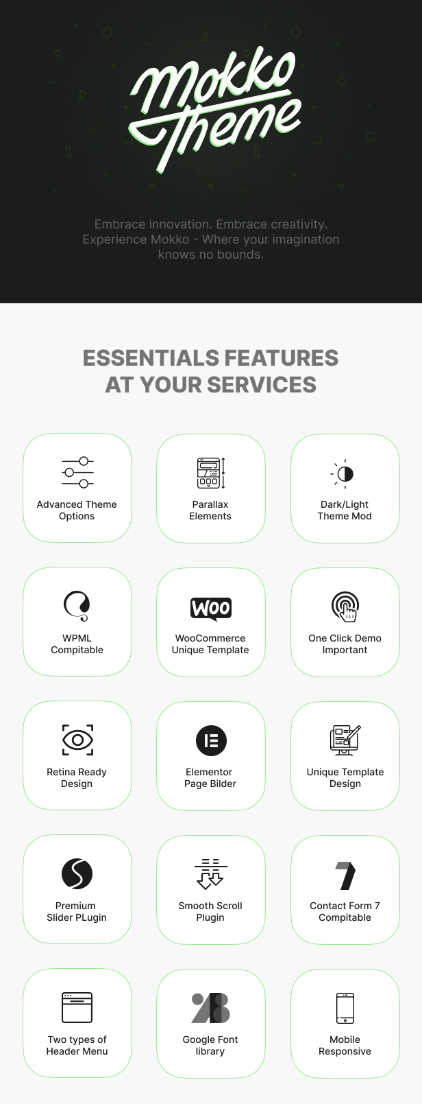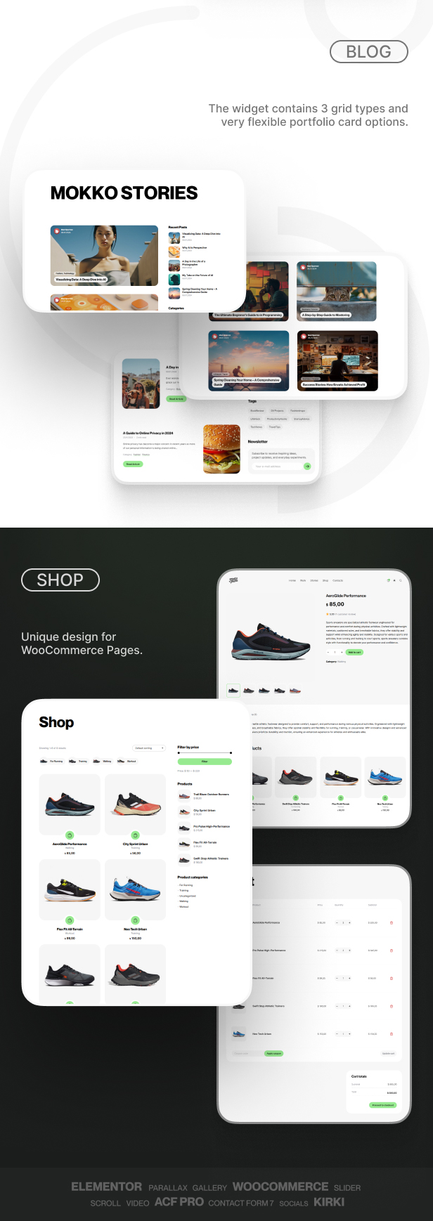 Mokko 主题与 WooCommerce 和 Elementor 等流行插件完美兼容,使您能够将网站转变为动态的在线商店或互动数字画布。无论您是经验丰富的专业人士还是有抱负的创意者,Mokko 都是您追求艺术卓越的最佳伴侣。