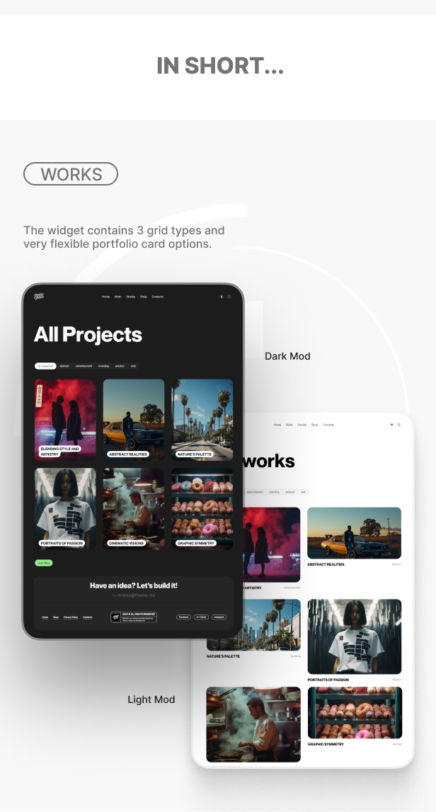 Mokko 提供多种灵活的布局选项、迷人的配色方案和动态排版,助您轻松定制网站。您可以根据个人风格和需求,轻松策划您的作品集,将独特的创意呈现给世界。无论是想要简约风格还是复杂设计,Mokko 都能满足您的需求。