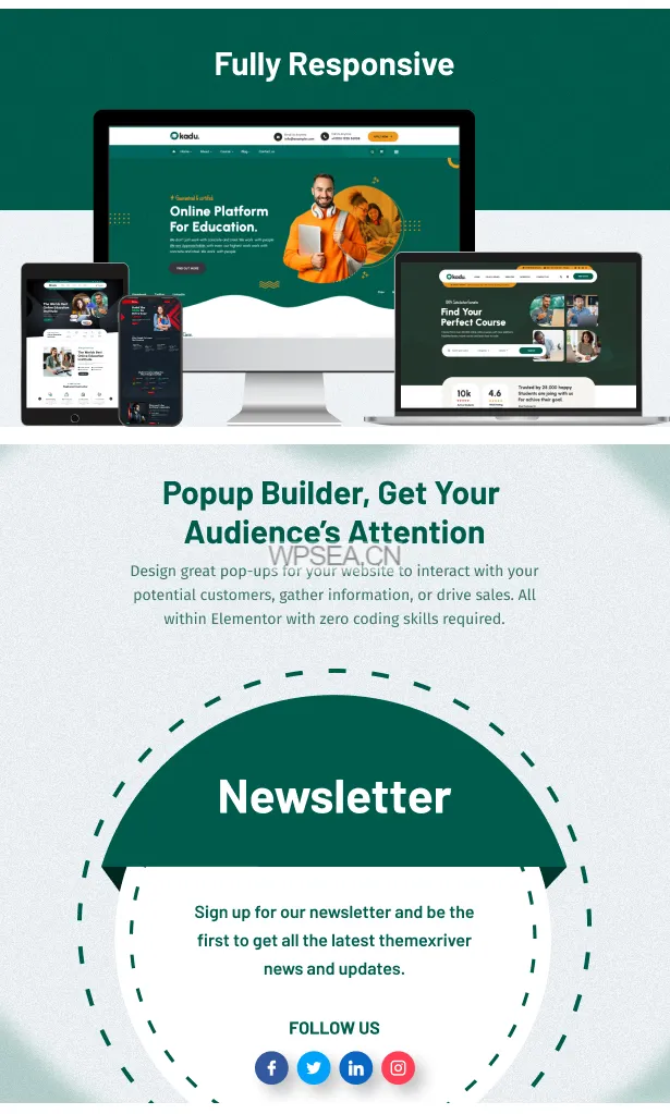 Kadu教育WordPress主题是构建在线学习平台的理想选择。其强大的功能和灵活的自定义选项,使其成为教育机构、在线课程创作者和个人教育者的完美解决方案。立即体验Kadu,提升您的教育网站!