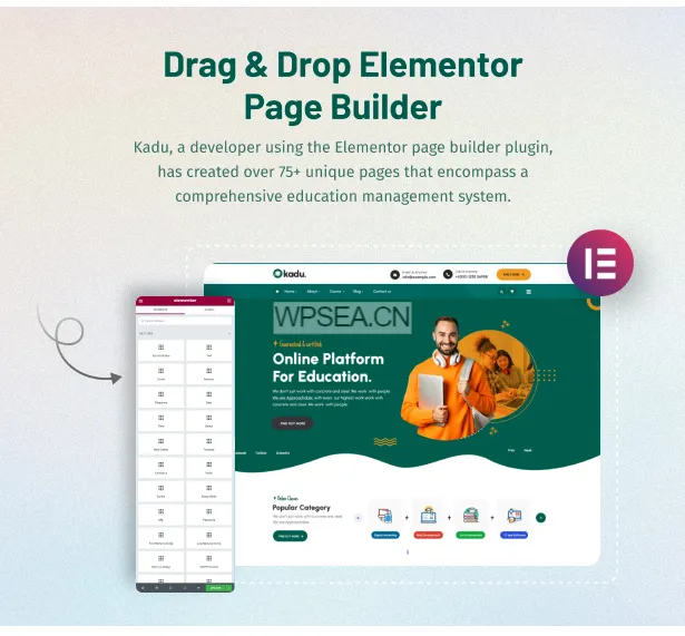 使用Kadu,您可以通过直观的拖放式编辑工具轻松设计页面。Elementor使得页面定制变得快速而简单,您只需几分钟即可完成布局并发布。