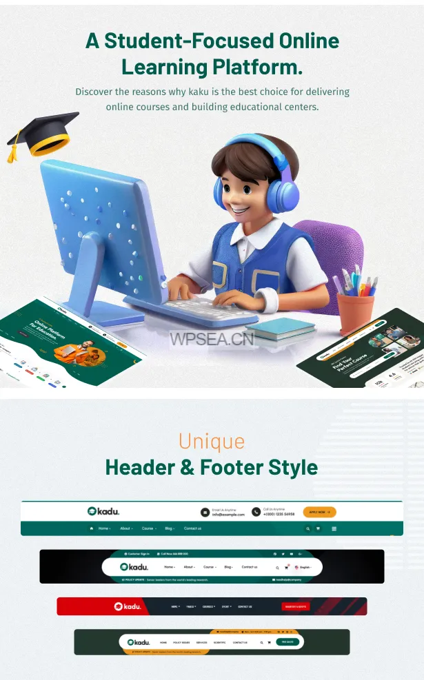 提升您的教育网站体验,选择Kadu——一款专为现代教育工作者和在线学习专业人士设计的教育WordPress主题。Kadu提供了创建令人惊叹且功能强大的教育网站所需的一切,助您轻松构建在线学习平台。