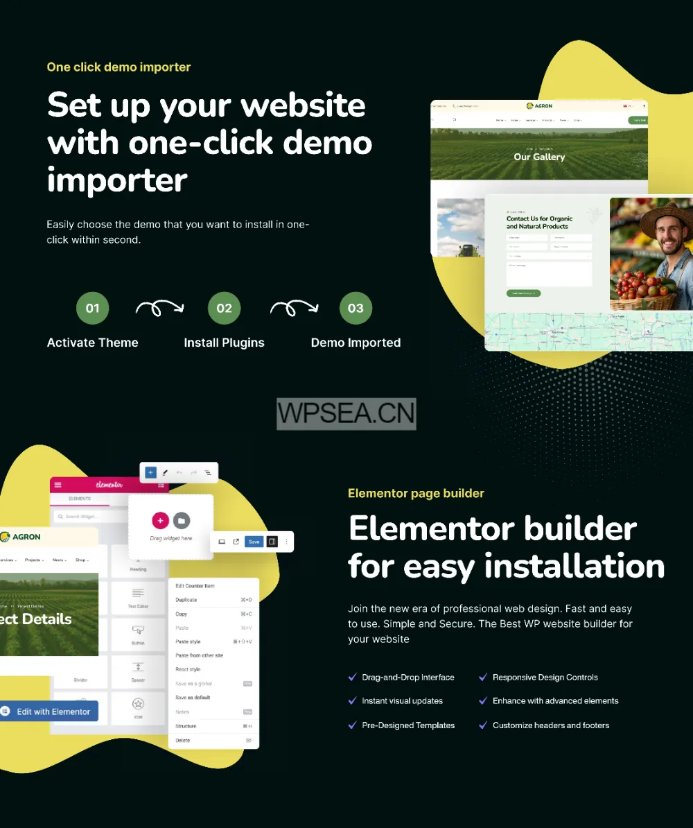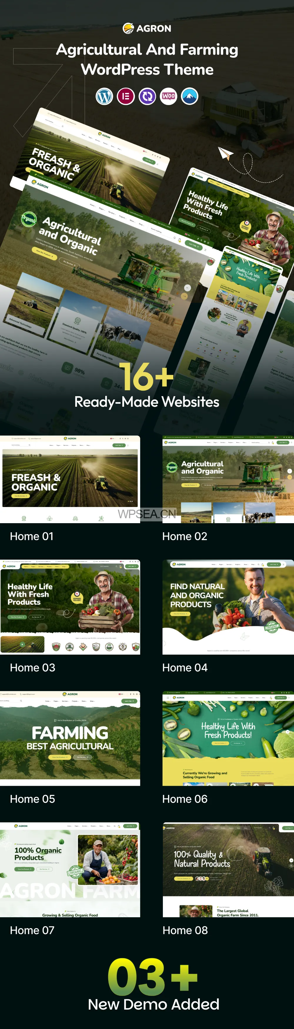 无论您是经营有机农场、食品商店,还是从事农业相关业务,Agron主题都能帮助您建立一个专业且吸引人的在线形象。通过其强大的功能和易用性,您可以将访客转化为客户,提升业务的在线影响力。