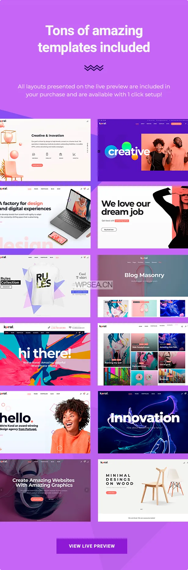 Koral主题包含11个预设网站,用户可以根据自己的需求快速选择和应用。这些网站模板涵盖了不同的行业和风格,确保每位用户都能找到适合自己的设计。