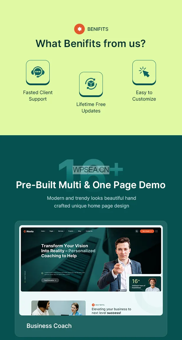 Nexta是一个干净、现代且专业的WordPress主题,专为商务咨询、金融、企业和代理网站而设计。它不仅仅是一个WordPress主题,更是一个完整的商业解决方案。无论您是初创公司、咨询公司、金融顾问还是企业代理,Nexta都是展示您的服务、项目和团队的完美选择,优雅而高效。