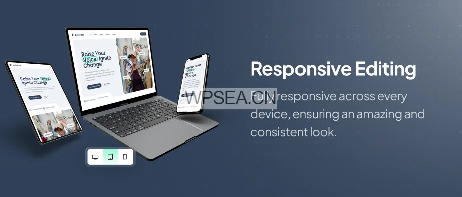 我们的响应式设计确保您的网站在任何设备上都能完美呈现,轻松适应桌面、平板和智能手机。支持者可以随时随地了解、捐款或加入您的使命。