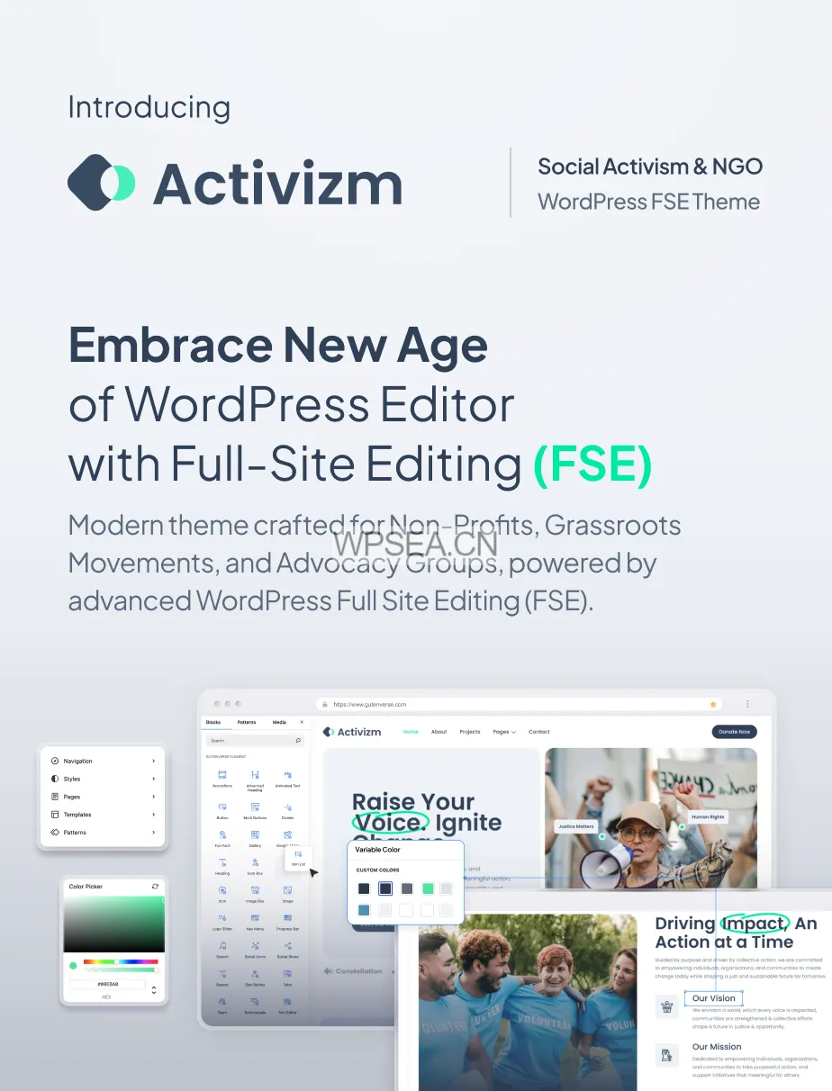Activizm是专为社会活动和非政府组织(NGO)设计的WordPress主题。它非常适合启动有影响力的活动、推广社会事业、动员志愿者和收集捐款。无论是非营利组织、倡导团体、慈善基金会还是社区运动,Activizm都能为您提供理想的解决方案。该主题与WordPress区块编辑器完全兼容,并由Gutenverse插件提供支持,拥有专业设计和100%响应式布局,易于自定义,无需编码技能。