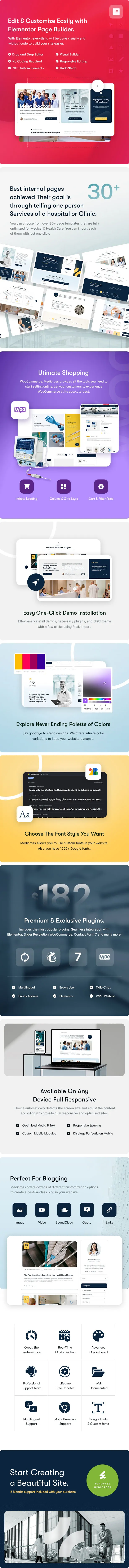 Medicross针对医疗中心、医院、医生诊所、皮肤护理、美容整形、医药行业等多种医疗场景设计,确保网站风格符合行业特性,提升访客信任感和专业形象。