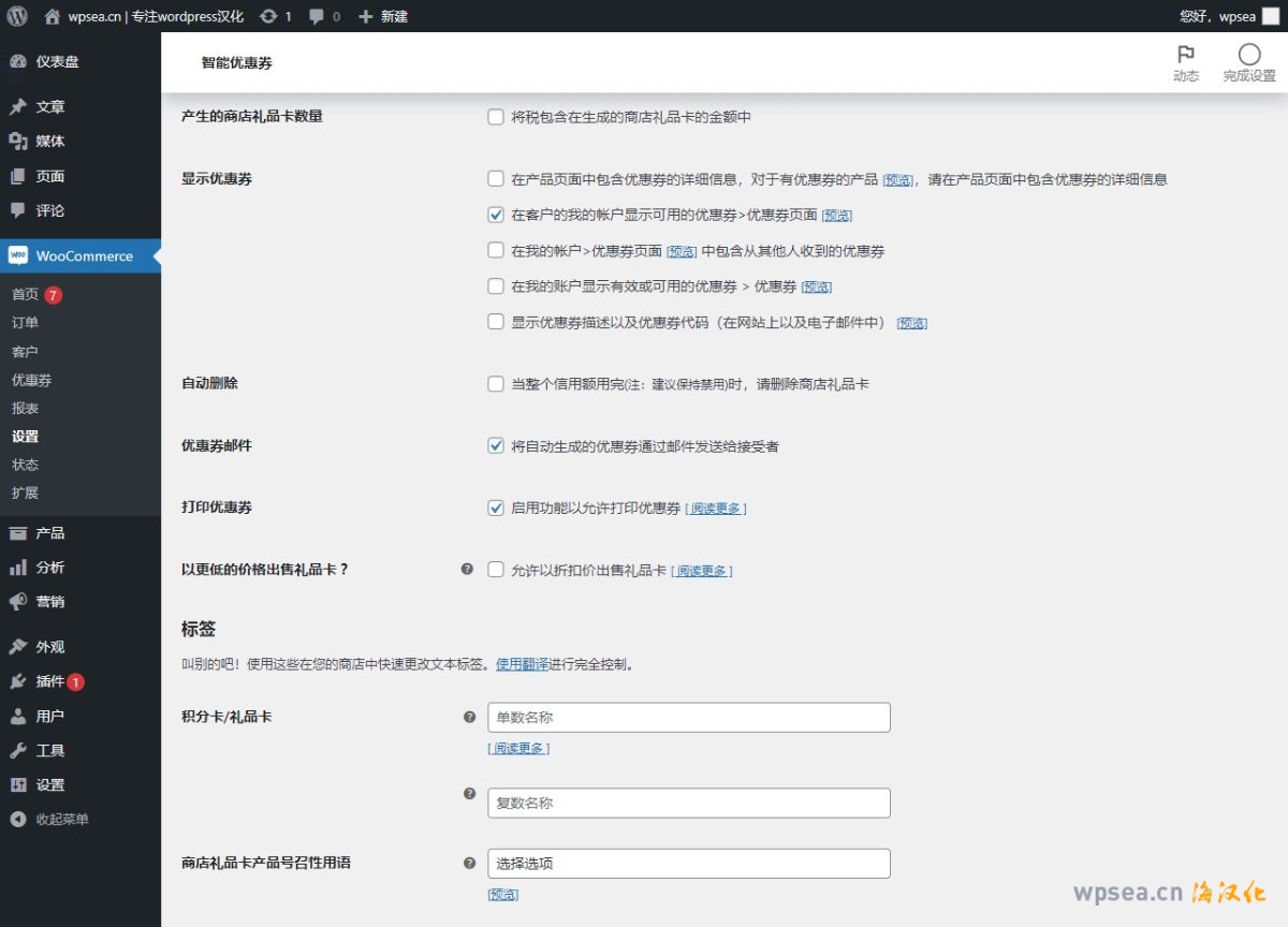 Smart Coupons 扩展插件已汉化,直接wordpress上传安装启用插件即可完美使用.