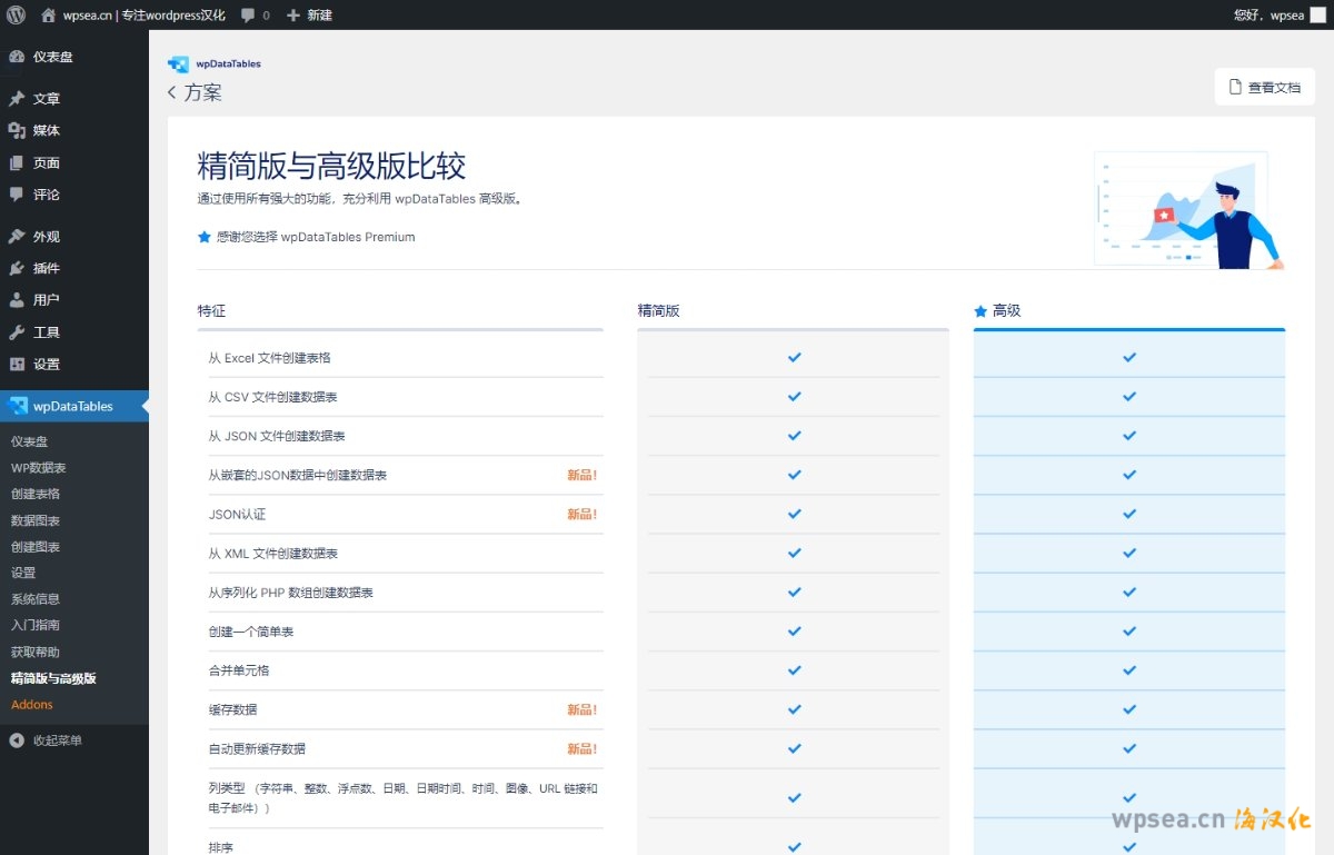 wpDataTables Premium插件已汉化激活,直接wordpress上传安装启用插件即可完美使用.